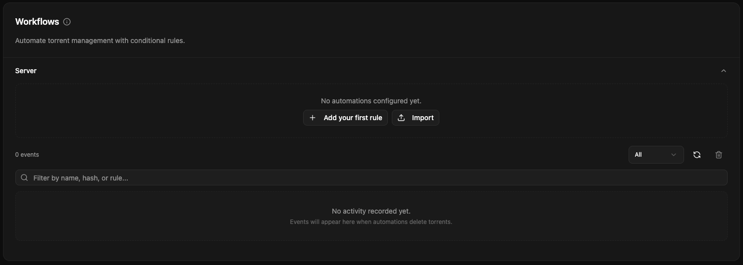The state of all of your torrents can be easily monitored through the tags applied to them, and you can easily adjust any part of the workflow in Qui’s interface if you want to change how it works in the future. In addition, Qui’s automation menu has a log of all automation actions taken, so if you ever want to check what’s happening to your torrents, you can easily check the log to see what actions have been taken on them and why.